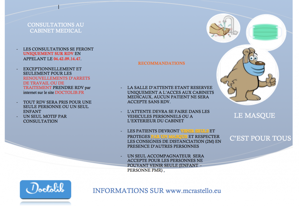 IMPORTANT :LES PATIENTS PORTEURS D INFECTION COVID NE SONT PAS RECUS AU CABINET MEDICAL